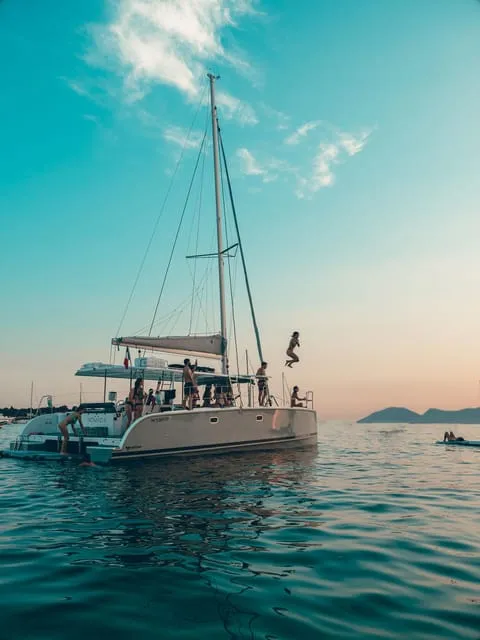 Use the diving board on the roof of the catamaran to jump into the refreshing sea.